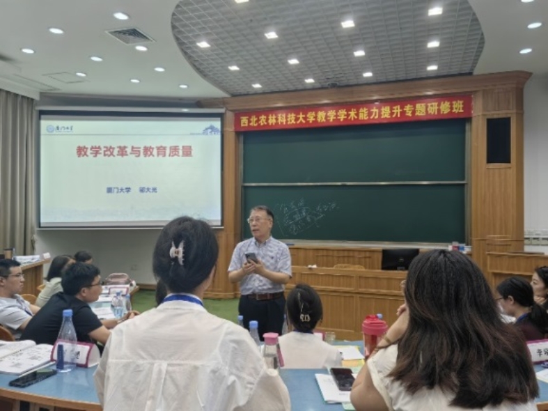 6.在教育教学研究与教学成果的提炼主题中厦门大学教育研究院陈武元教授做了教育教学的研究与写作——选题、方法与提炼、厦门大学教师发展中心副主任薛成龙博士做了教学成果的培育与凝练、申报的报告;另外厦门大学教育研究院洪志忠副教授做了促学而教的理念的教学工作坊、厦门大学教师发展中心郑宏副教授做了策略和理念发展与多元实践的教学学术报告。