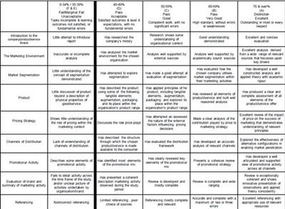 a.评估表格(Rubrics,或称“量规”):需要制定明确的打分细则(见如下哈珀亚当斯大学的评估表格)