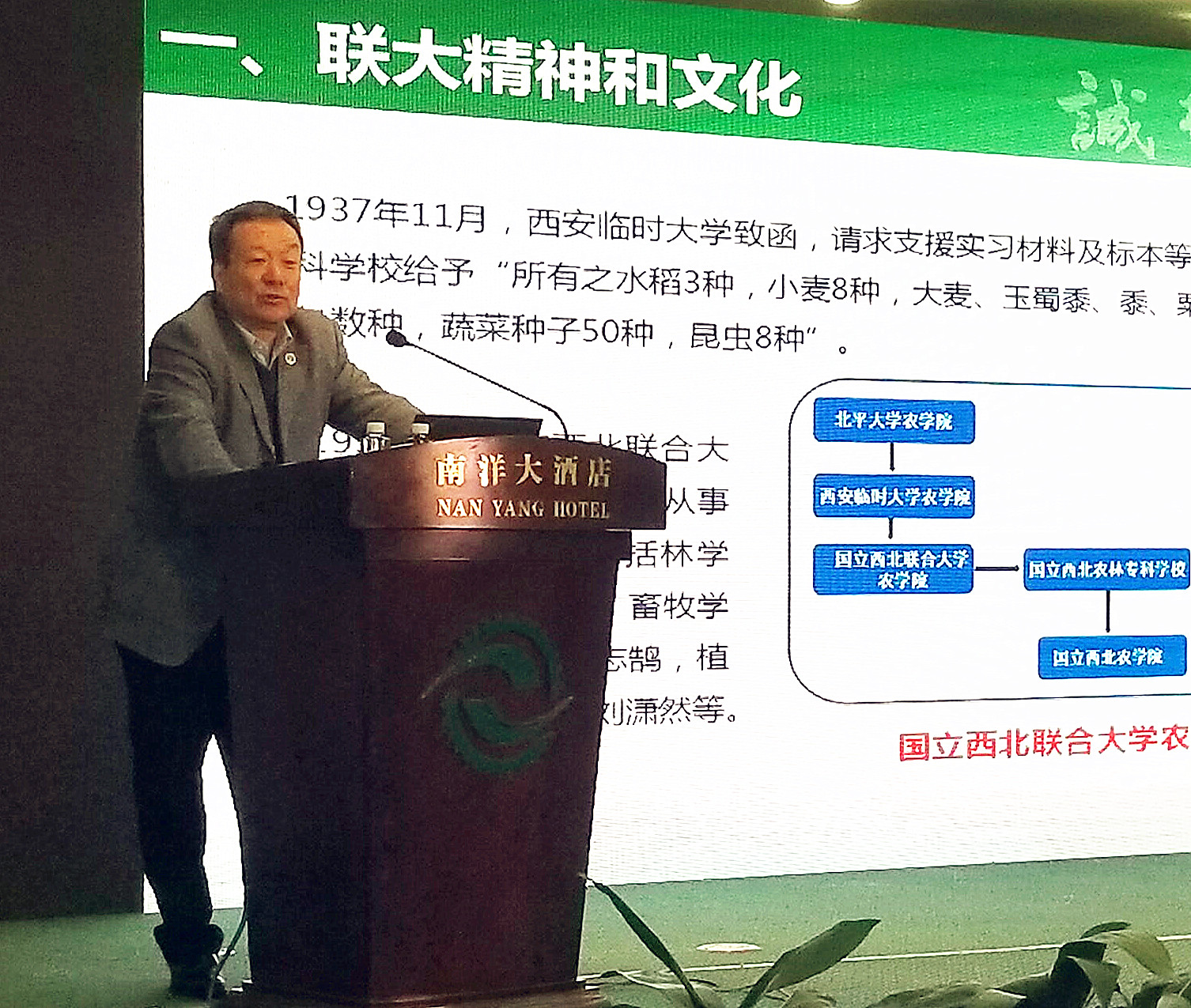 11月18日,第六届西北联大与中国高等教育发展论坛在西安交通大学举行,来自与西北联大有学脉传承关系的30余所高校的专家学者共200余人参加论坛。校党委常务副书记赵忠出席论坛并作了题为《弘扬西北联大精神 创建一流农业大学》的主题报告。