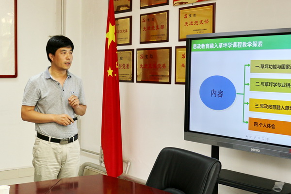 参赛教师立足各自学科和课程的特点,深入挖掘提炼专业课程蕴含的育人元素,将思想政治教育和专业知识传授相融合,把思政教育融入教学全过程,达到润物无声的效果。一是把习近平新时代中国特色社会主义思想与课程教学相结合。草业科学系许岳飞副教授将习近平生态文明思想与《草坪学》课程教学结合,让学生更好地理解“绿水青山就是金山银山“等理念。二是利用身边大量的科研生产实践案例,把“敬业、爱国“等社会主义核心价值观自然引入的课堂教学中,让专业知识具备价值灵魂。动物科学系张建勤副教授在课程教学中引入行业前辈用数十年的辛勤付出实现的育种案例,引导大学生树立正确的三观,自觉把个人奋斗与国家民族的前途命运联系起来。三是通过社会生活中的热点事件和鲜活事例,激发学生的学习热情,增强自觉践行国家创新发展战略的使命感和责任感。潘传英副教授结合讲解的癌细胞知识和发生的真实事例,以及治疗癌症药物主要依赖进口的事实,激发大家投身科学研究事业的热情和“国家兴亡,匹夫有责”的意识。最后,评委对参赛教师的课程思政展示一一做了点评,参赛教师也分享了自己的心得体会和思考。许岳飞副教授认为要做好引导,引导教师、学生理解接受课程思政,变被动为主动,同时加强培训和指导;水产科学系李杨老师通过分析比较两种思政教育的内涵要求,总结了做好课程思政的四个着眼点和四个着力点。经过评委集体评议,评选出学院“课程思政教学标兵”1人、“课程思政教学能手”1人、“课程思政教学骨干”3人。